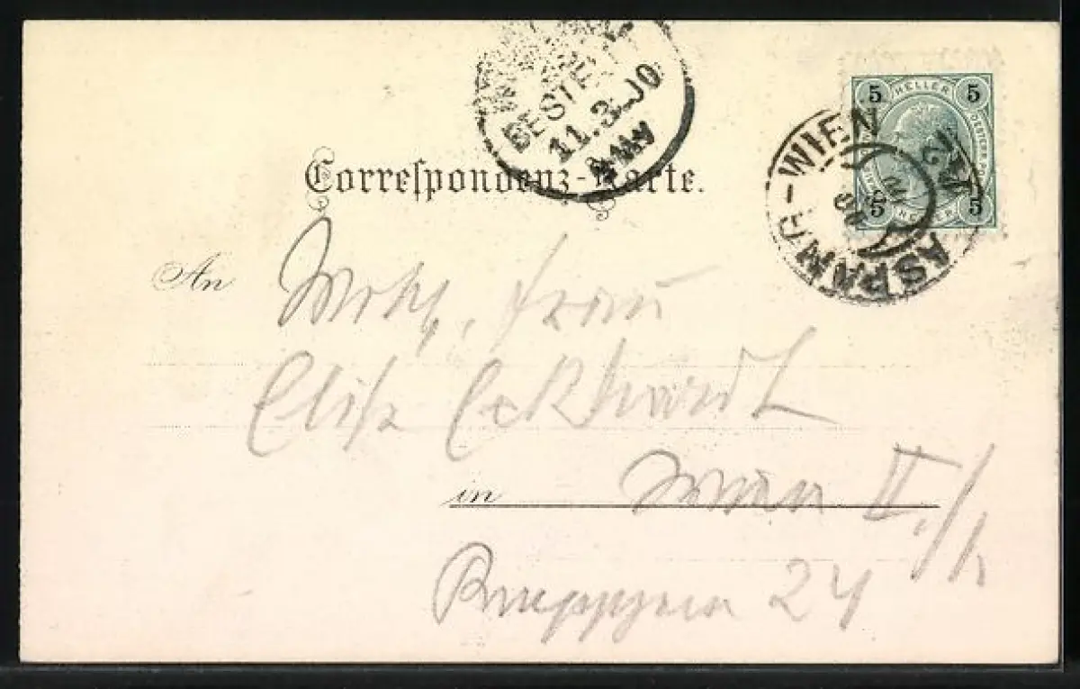gelaufen 1900, Stempelspur, Eckknick li. oben, guter Zustand