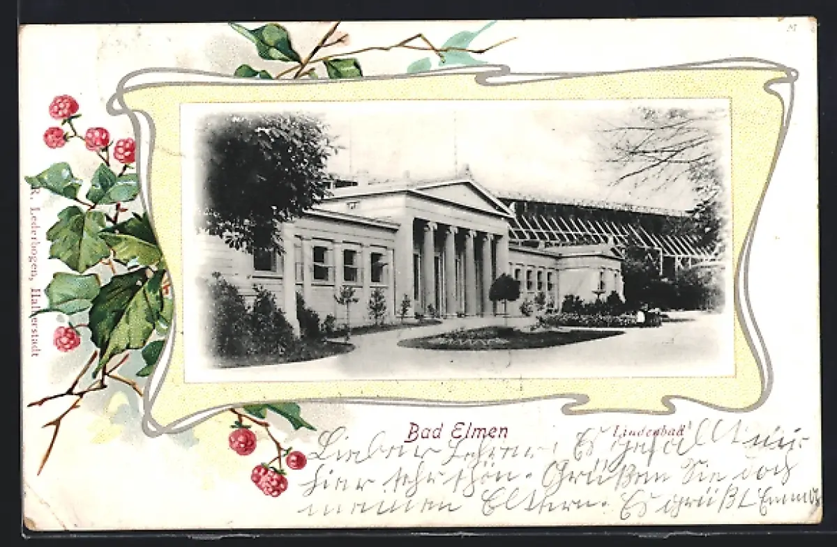 Lithographie Bad Elmen, Kurhaus, Passepartout