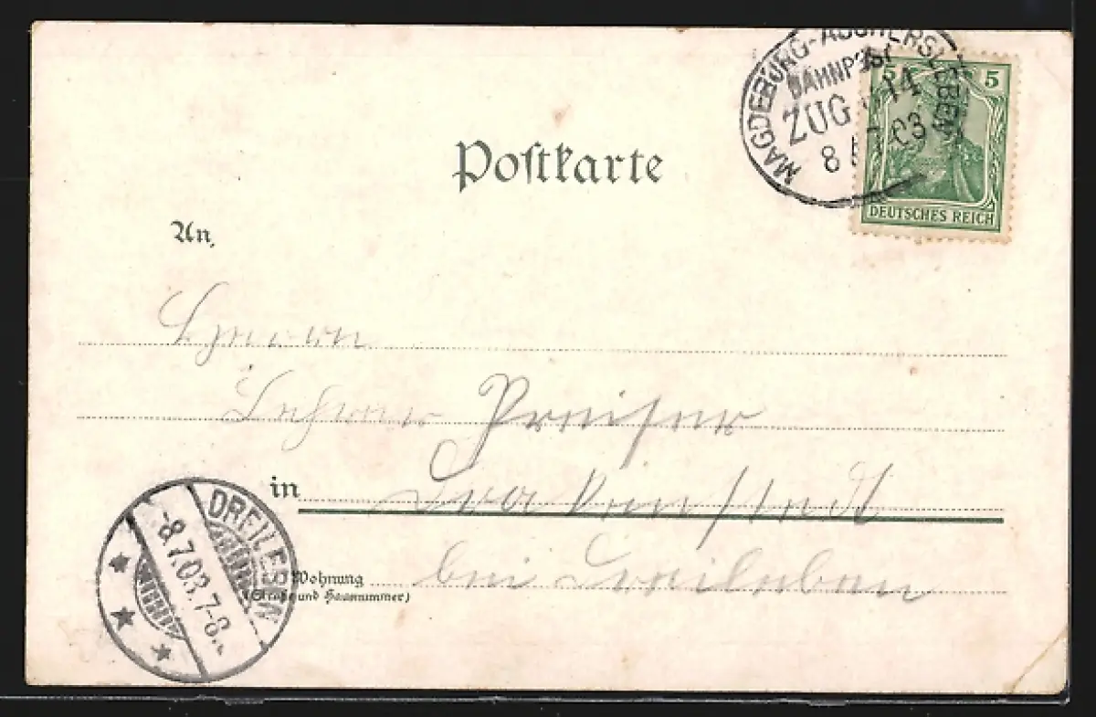 gelaufen 1903, Eckknick li. unten, guter Zustand