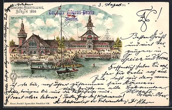 Lithographie Berlin, Gewerbe-Ausstellung 1896, Fischerei-Ausstellung, Hansa-Haus