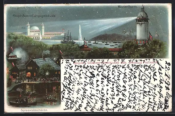 Lithographie Berlin, Gewerbe Ausstellung 1896, Haupt-Ausstellungsgebäude
