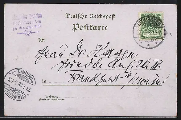 gelaufen 1898, Eckknick re. oben, guter Zustand