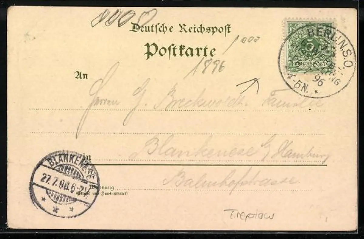 gelaufen 1896, Eckknick re. oben, guter Zustand