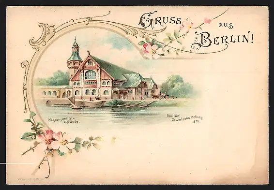 Lithographie Berlin, Gewerbe-Ausstellung 1896, Nahrungsmittelgebäude