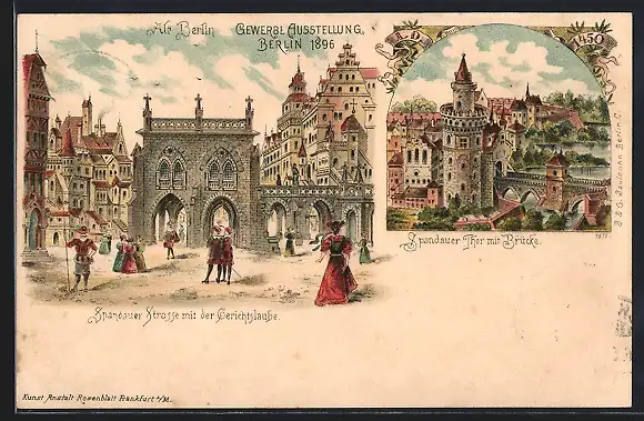 Lithographie Berlin, Gewerbe-Ausstellung 1896, Spandauer Strasse mit der Gerichtslaube
