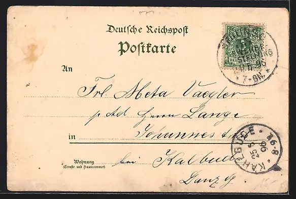 gelaufen 1896, Eckknicke li., guter Zustand