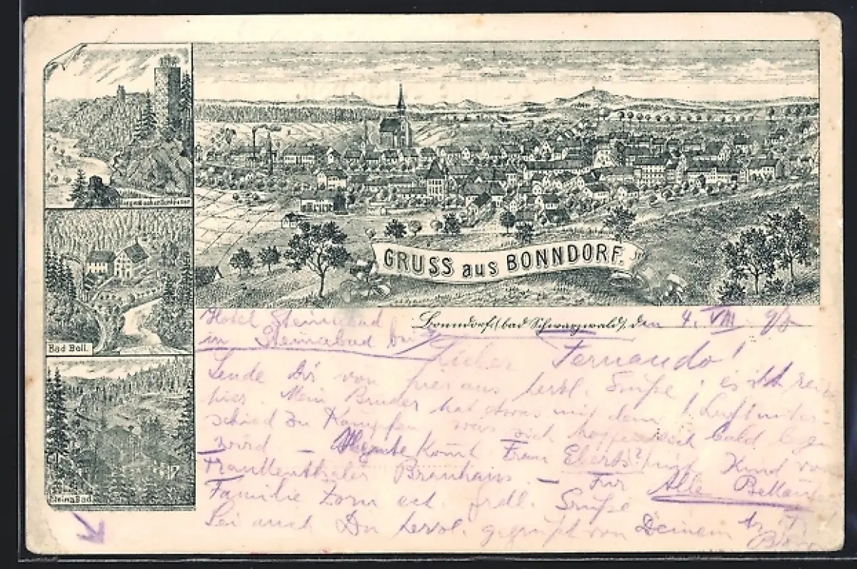 Lithographie Bonndorf / Baden, Bad Boll, Roggenbacher Schlösser, Steinabad