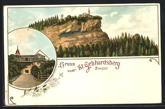 Lithographie Bregenz, St. Gebhardsberg-Restaurant