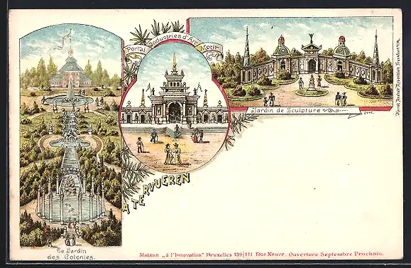 Lithographie Brüssel Atervueren, Portal Industries d`Arr Motit, Le Jardin des Colonies, Jardin de Sculpture