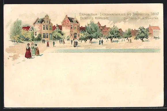 Lithographie Bruxelles, Exposition Internationale 1897, Quartier du Vieux Bruxelles