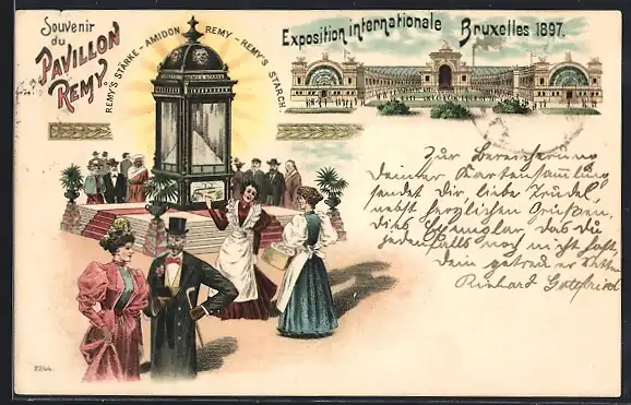 Lithographie Bruxelles, Exposition internationale 1897, Pavillon Remy, Ausstellung