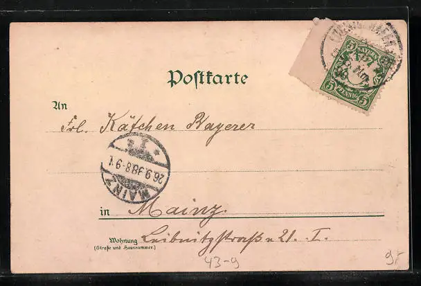 gelaufen 1898, Eckknicke unten, guter Zustand