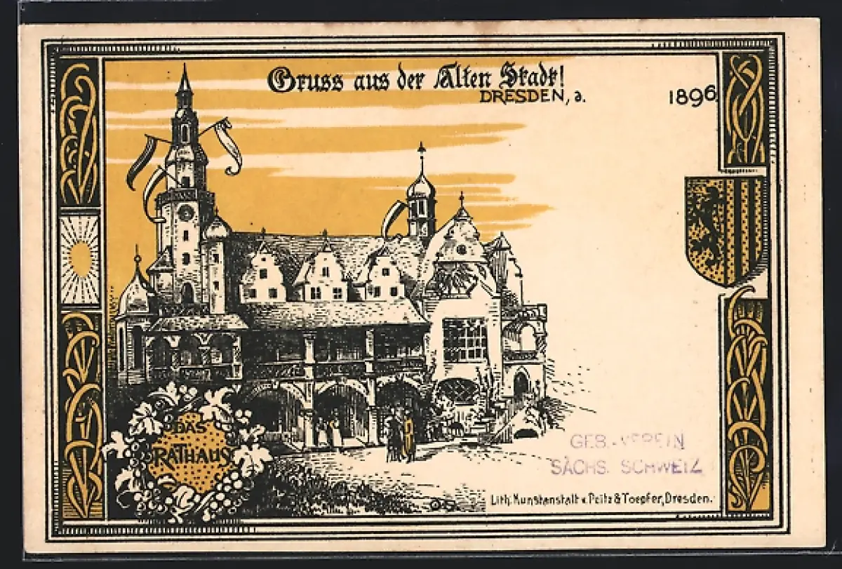 Lithographie Dresden, Ausstellung, Partie am Rathaus