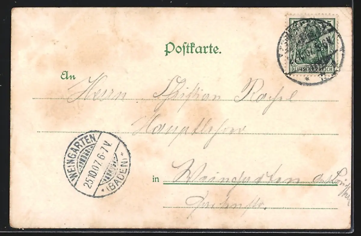 gelaufen 1907, Eckknick oben li., guter Zustand