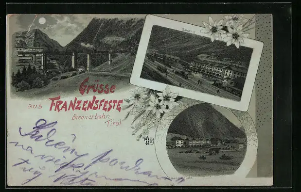 Lithographie Franzensfeste, Totalansicht mit Bahnhof