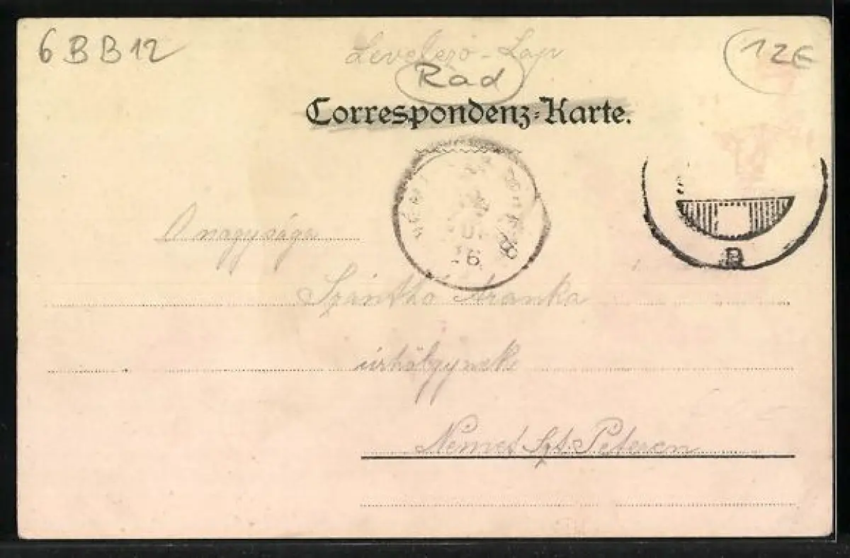 Personenbezogene Daten auf der Rückseite der Karte wurden durch blauen Textmarker unkenntlich gemacht. Die blauen Stellen sind auf die Vorderseite durchgeweicht und wirken sich negativ auf das Postkartenfoto aus