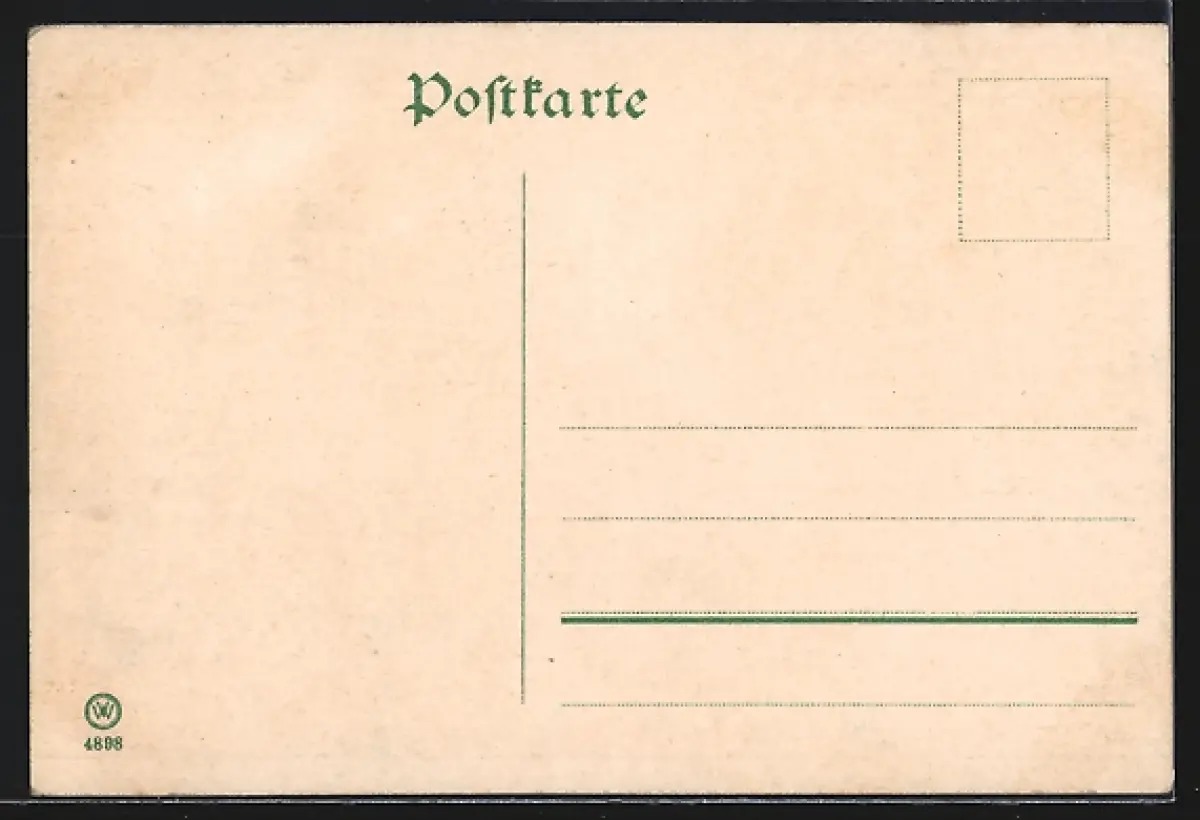 Personenbezogene Daten auf der Rückseite der Karte wurden durch blauen Textmarker unkenntlich gemacht. Die blauen Stellen sind auf die Vorderseite durchgeweicht und wirken sich negativ auf das Postkartenfoto aus