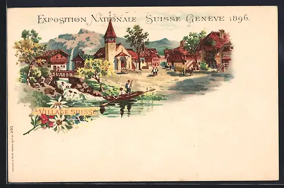 Lithographie Geneve, Exposition Nationale Suisse 1896, Village Suisse