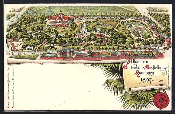 Lithographie Hamburg, Allgemeine Gartenbau-Ausstellung 1897