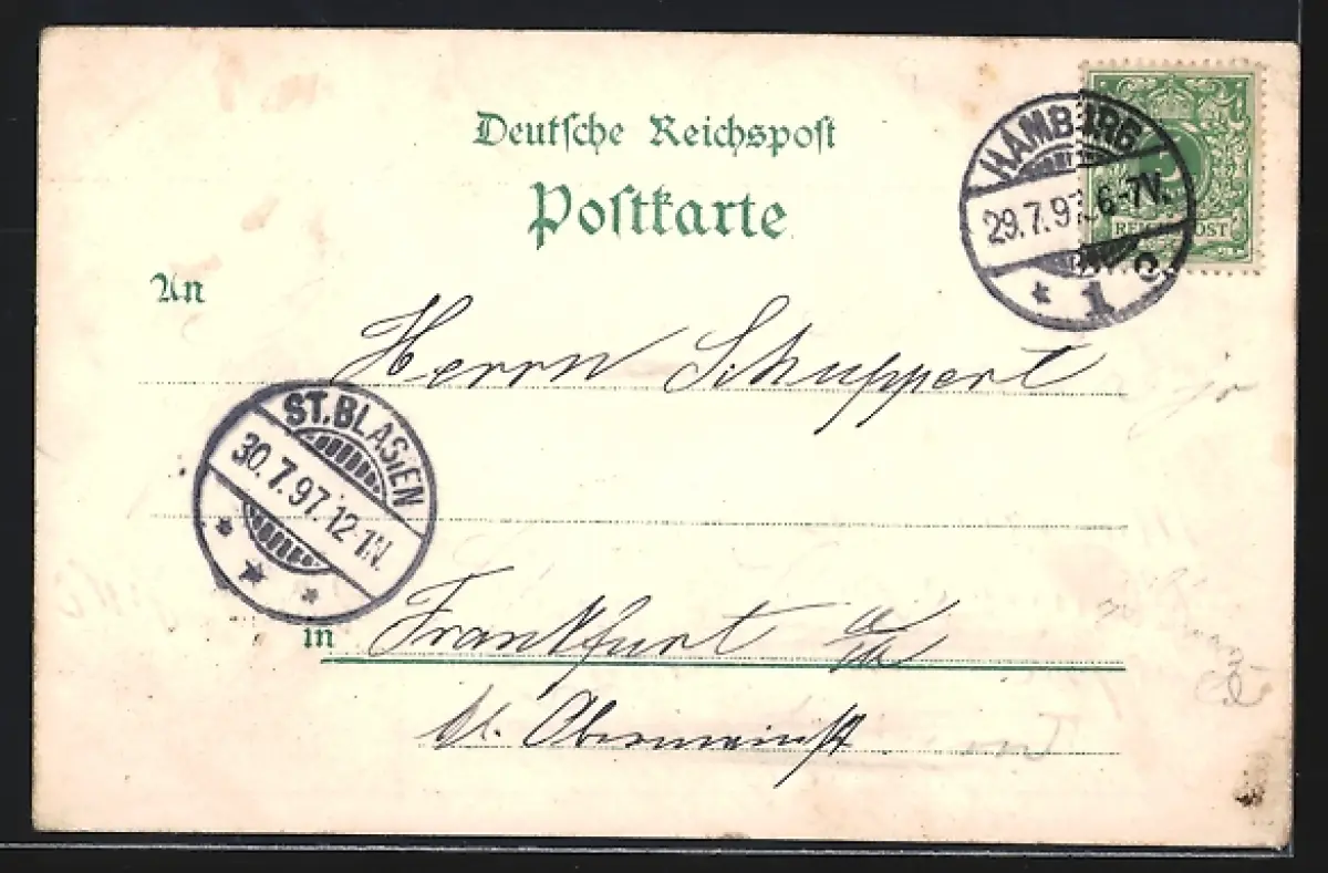 gelaufen 1897, Eckknick li. oben, guter Zustand