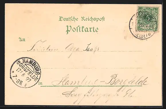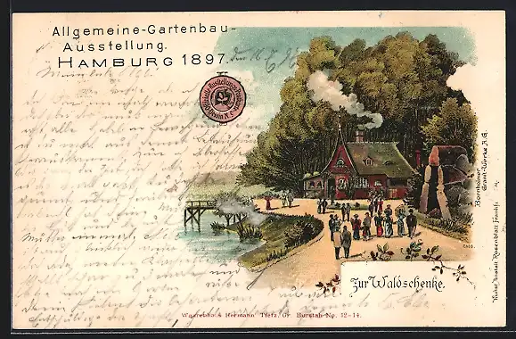 Lithographie Hamburg, Allgemeine Gartenbau-Ausstellung 1897, Gasthof zur Waldschenke