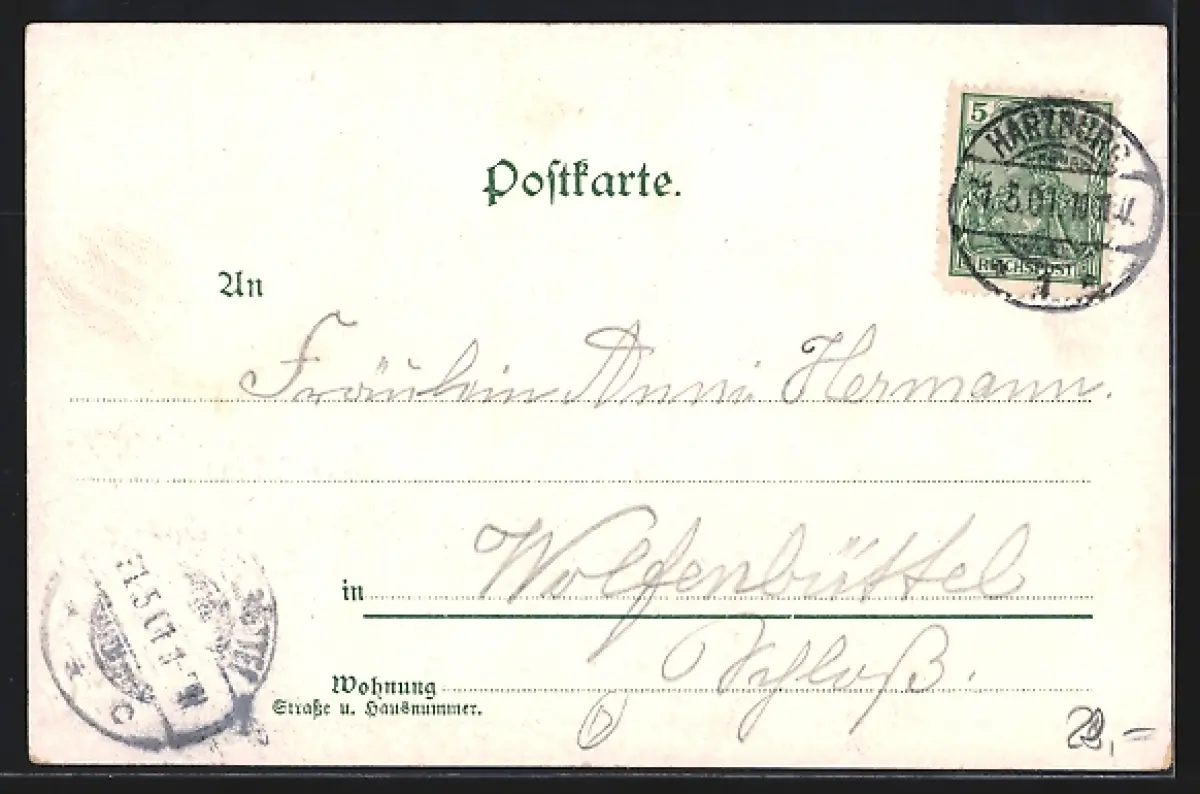 gelaufen 1901, Eckknick rechts oben, sonst guter Zustand