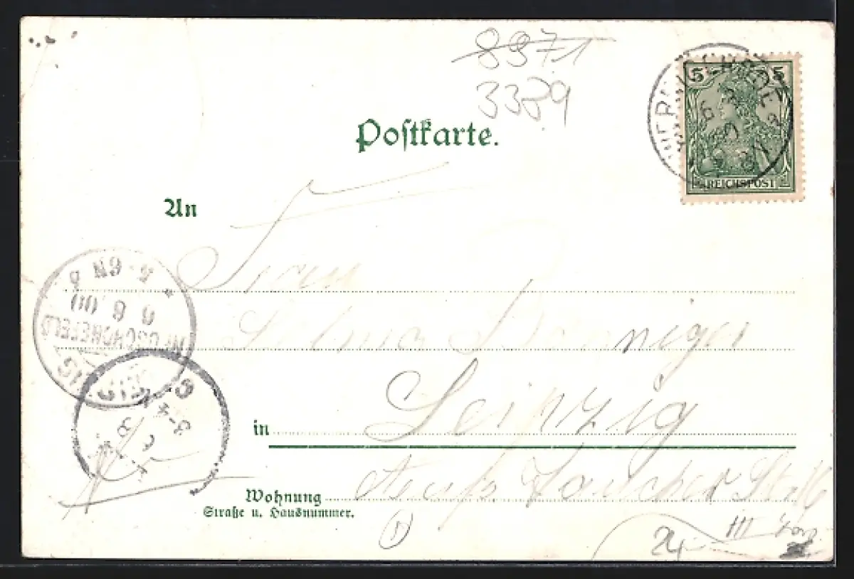 gelaufen 1900, Bugspur rechts unten und obere Kante, Eckknick rechts oben