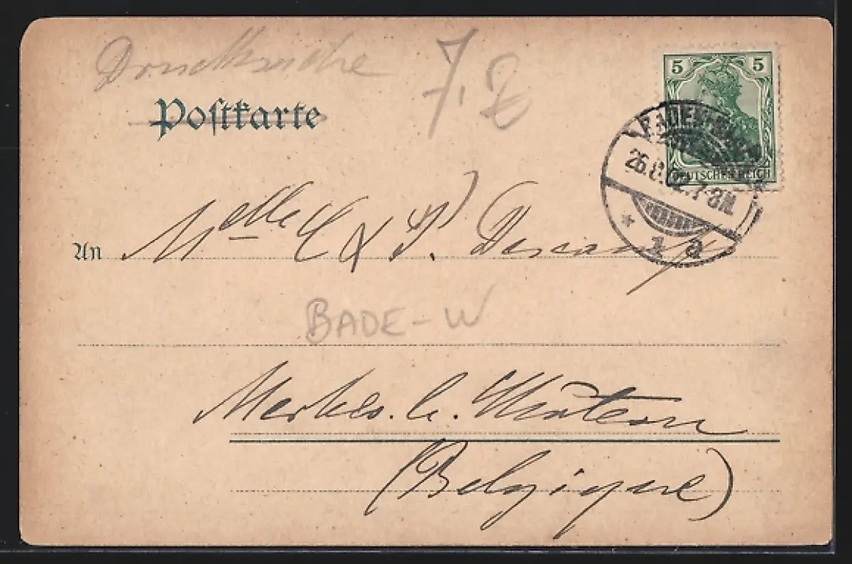 gelaufen 1902, Eckknick li. unten, Bugspur re. unten, guter Zustand