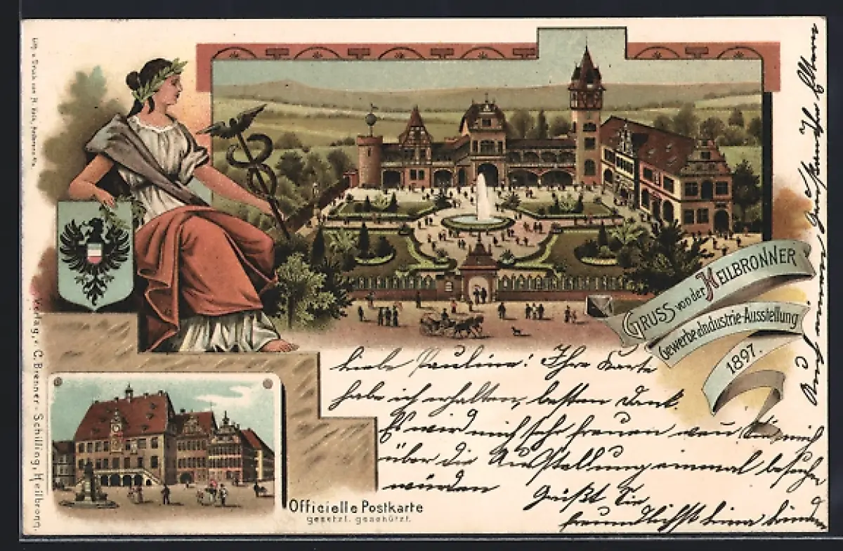 Lithographie Heilbronn, Gewerbe- u. Industrie-Ausstellung 1897, Totalansicht mit Parkanlage