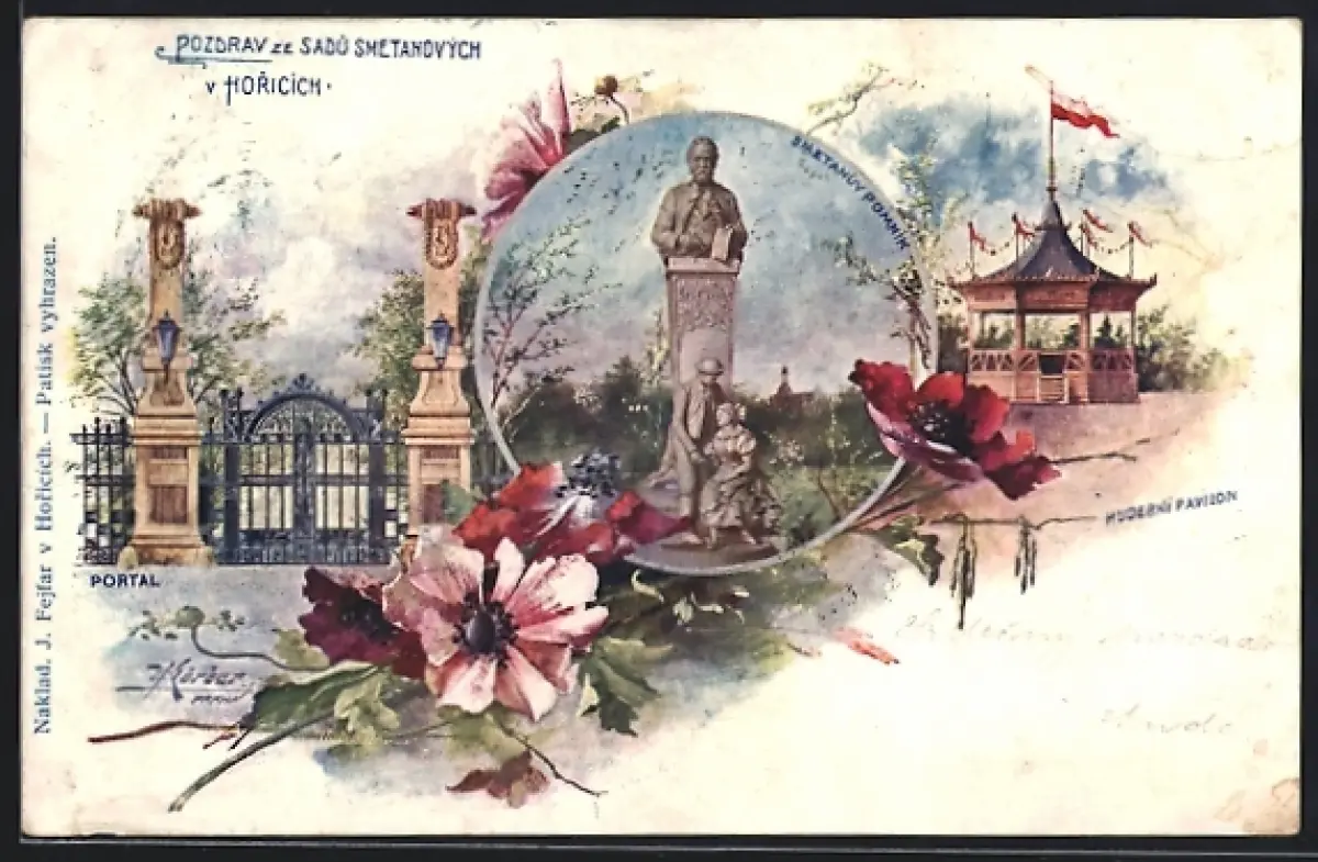 Lithographie Horice, Smetanuv Pomnik, Hudebni Pavilon, Portal