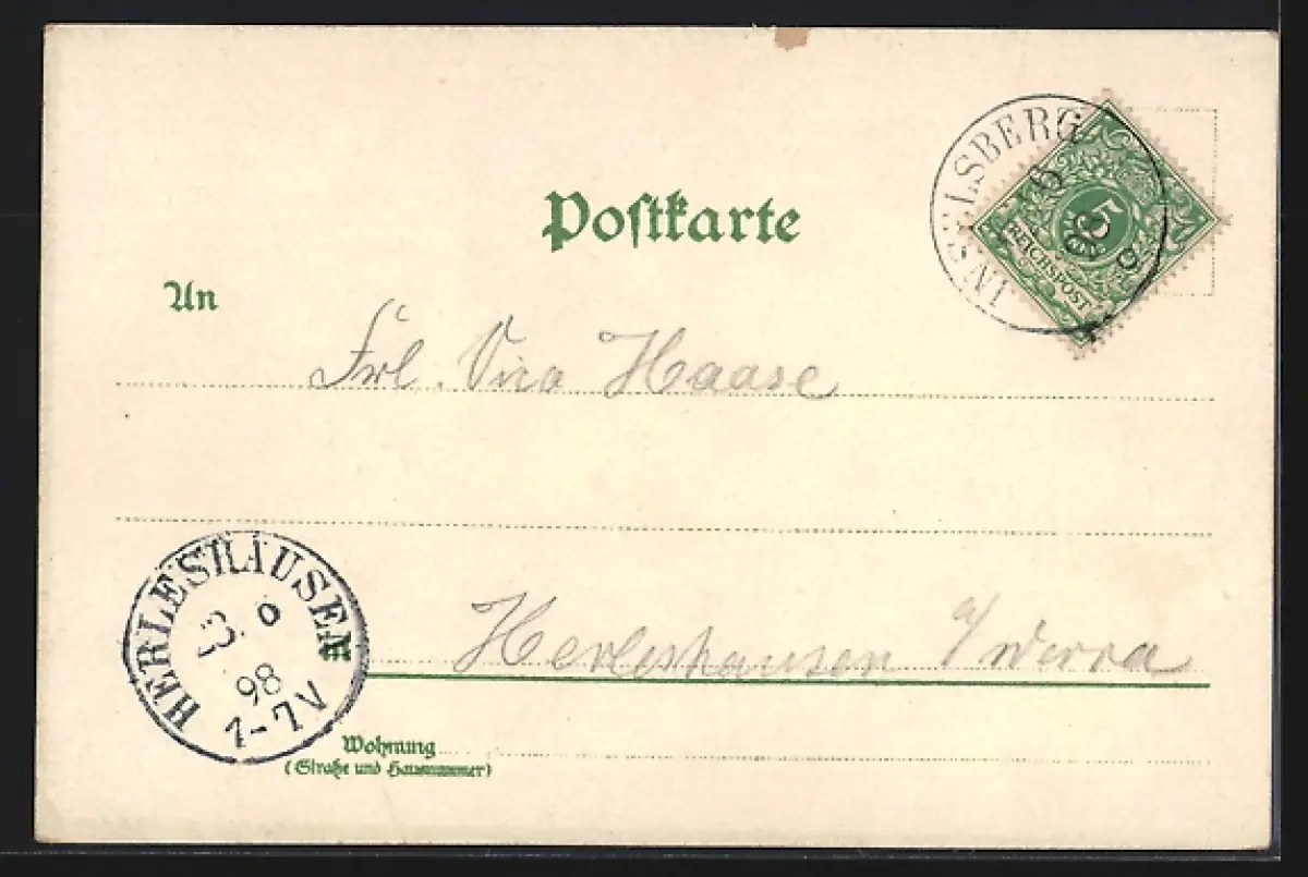 gelaufen 1898, rückseitig Oberflächenschaden, guter Zustand