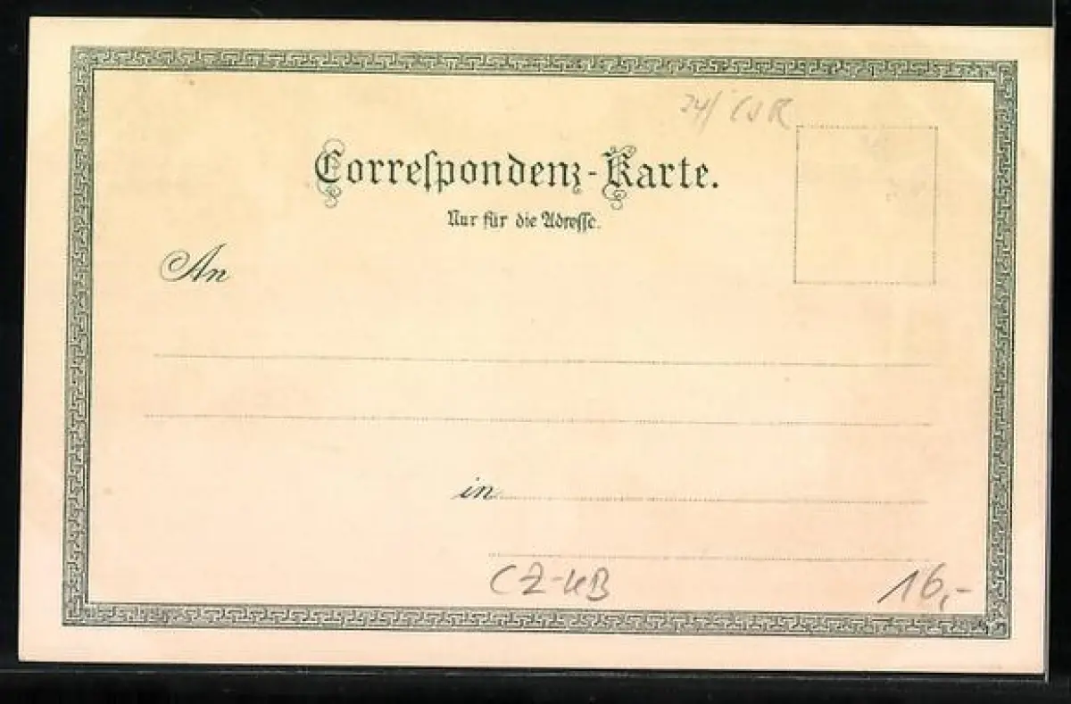 Personenbezogene Daten auf der Rückseite der Karte wurden durch blauen Textmarker unkenntlich gemacht. Die blauen Stellen sind auf die Vorderseite durchgeweicht und wirken sich negativ auf das Postkartenfoto aus
