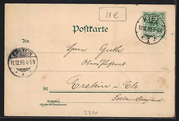 gelaufen 1899, Eckknick li. oben, guter Zustand
