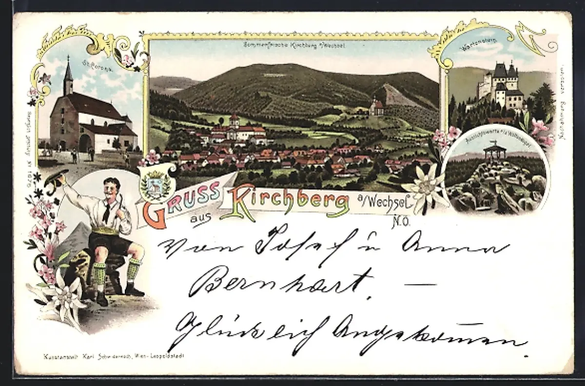 Lithographie Kirchberg a. Wechsel, Panorama, Wartenstein, St. Corona