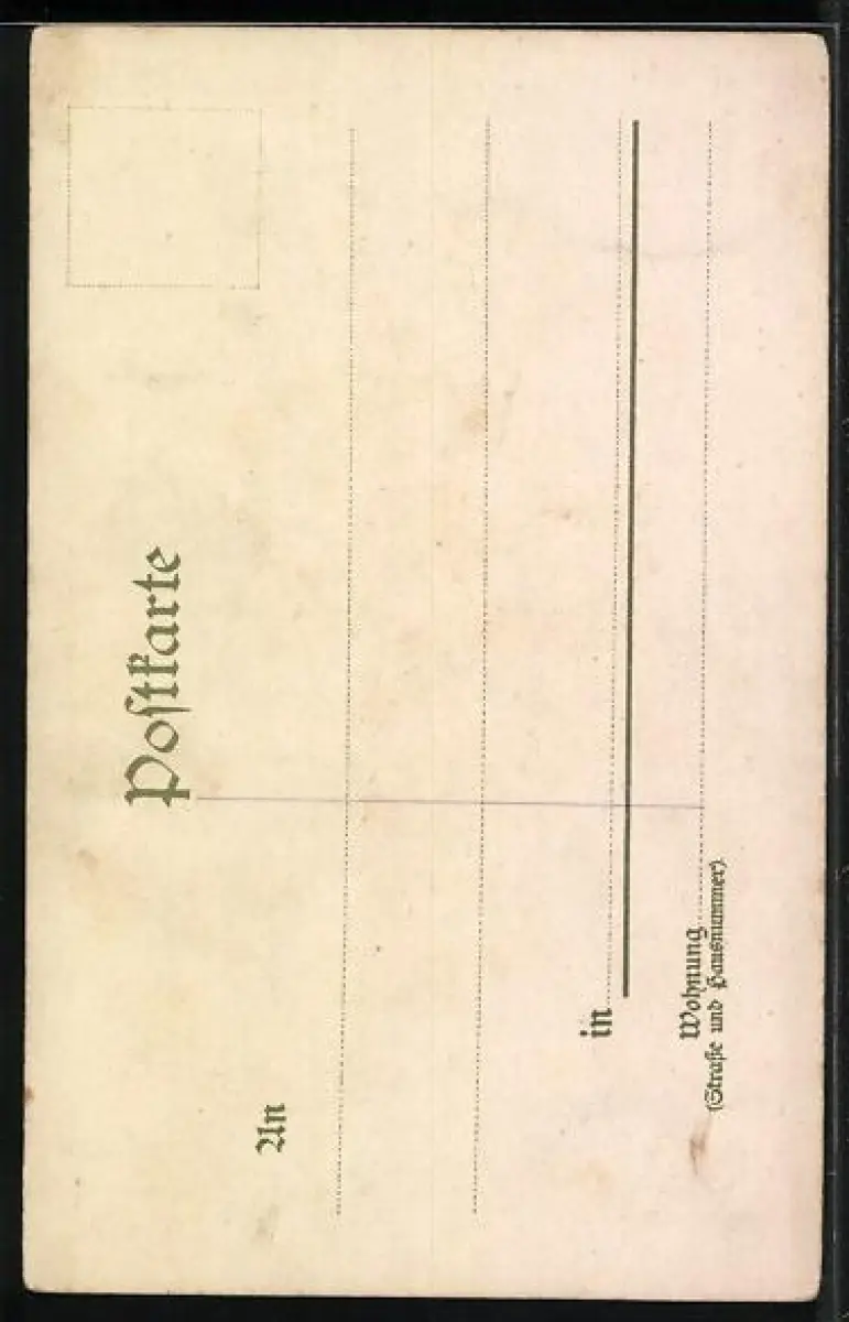 Personenbezogene Daten auf der Rückseite der Karte wurden durch blauen Textmarker unkenntlich gemacht. Die blauen Stellen sind auf die Vorderseite durchgeweicht und wirken sich negativ auf das Postkartenfoto aus