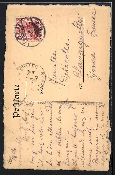 gelaufen 1906, Eckknick re. oben, guter Zustand