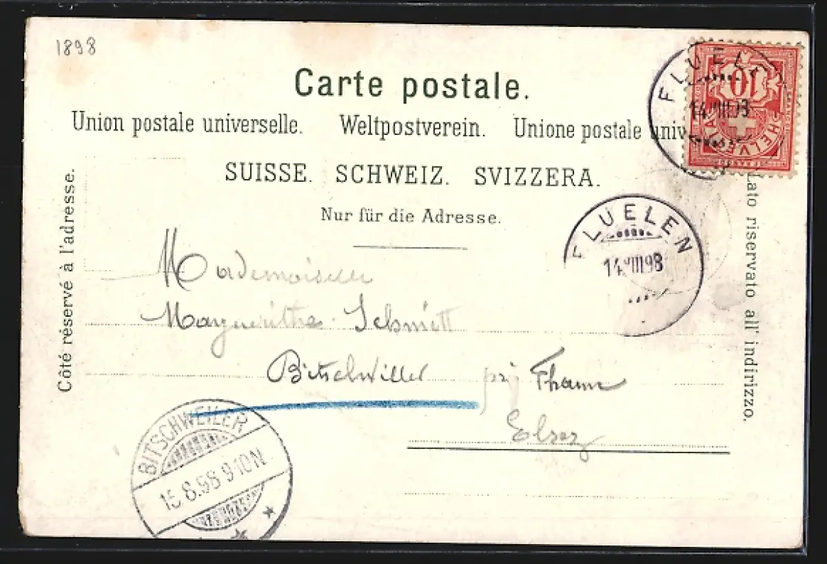 Lithographie Künzli Nr. 5022, Brunnen, Blick vom Vierwaldstättersee auf die Mythen, Berg mit Gesicht, Berggesichter