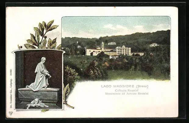 Lithographie Lago Maggiore, Collegio Rosmini Monumento ad Antonio Rosmini, Denkmal