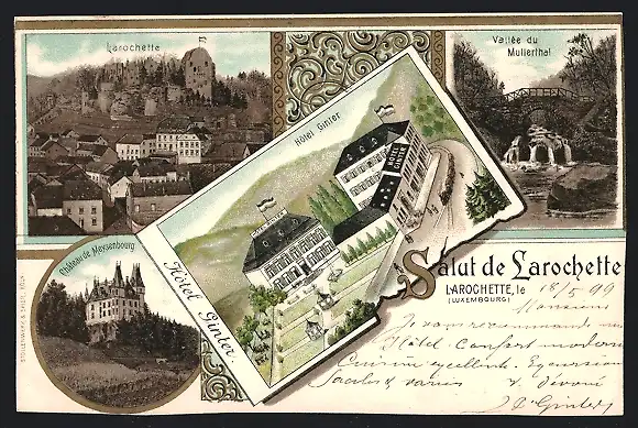 Lithographie Larochette, Hotel Ginter, Vallée du Mullerthal, Château de Meysenbourg