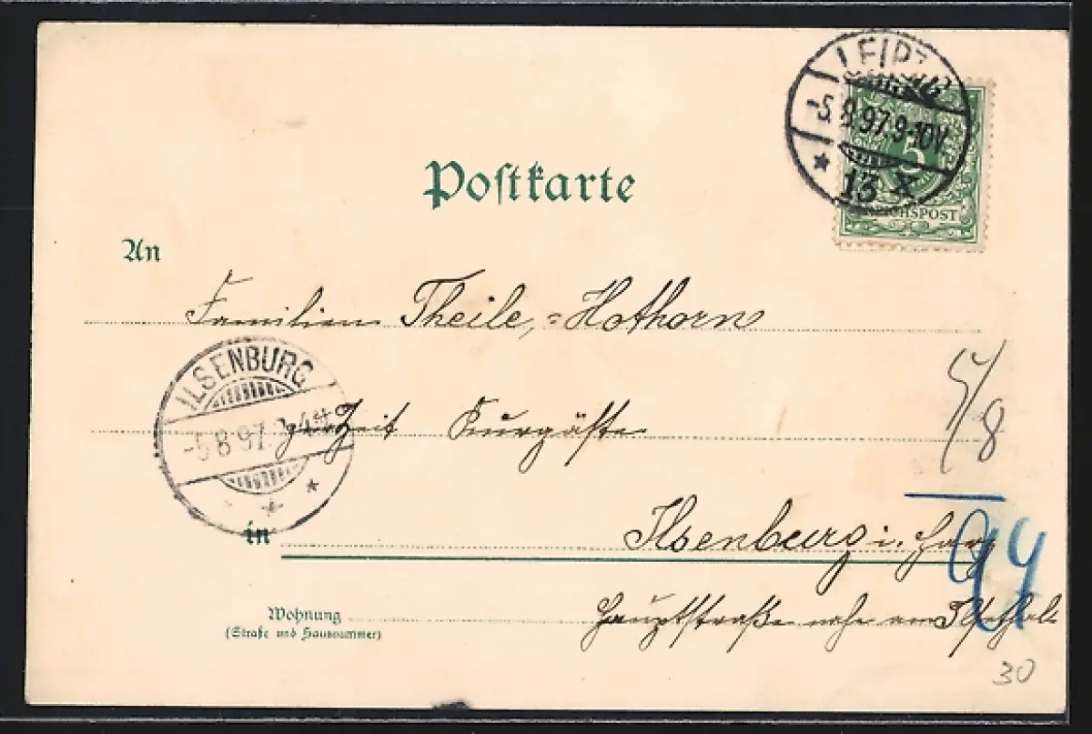 Lithographie Leipzig, Sächs. Thür. Industrie- und Gewerbeausstellung 1897, tanzendes Volk im Thüringer Dorf