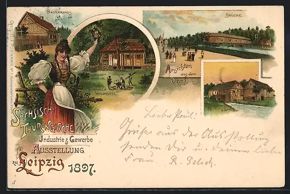 Lithographie Leipzig, Sächsisch-Thüringische Industrie-Gewerbe-Ausstellung 1897, Waldhütte