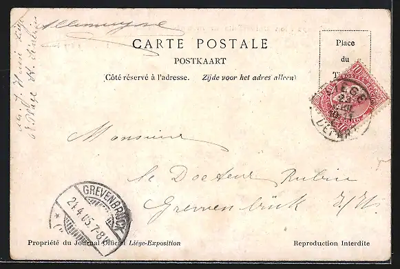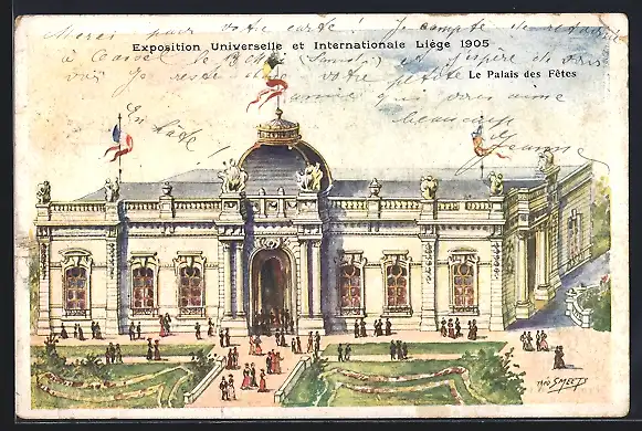 Lithographie Liége, Exposition Universelle et Internationale 1905, Le Palais des Fetes