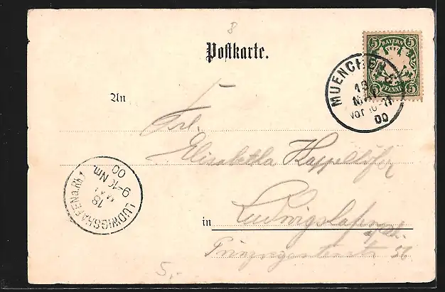 gelaufen 1900, Kanten bestoßen, Eckknick oben re., guter Zustand