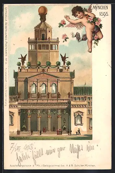 Lithographie München, Kraft-Arbeitsmaschinen-Ausstellung 1898, Mittelbau