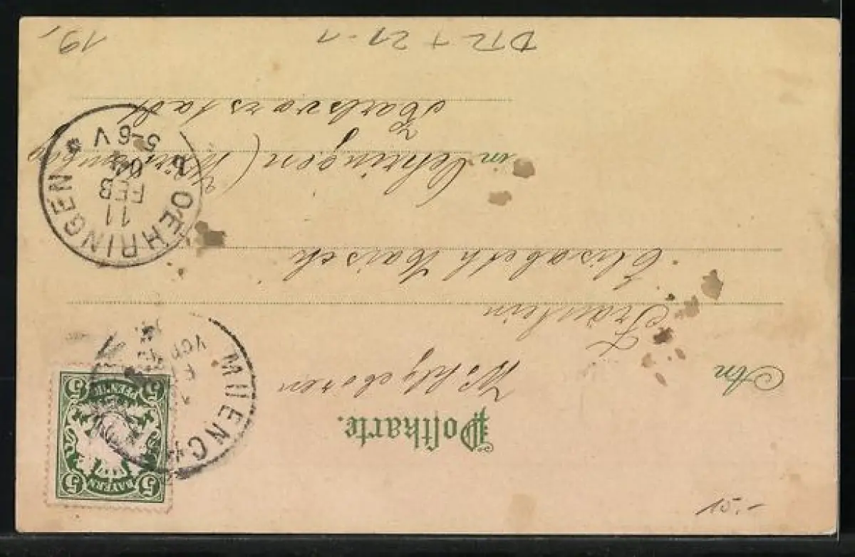 Lithographie München, Marienplatz mit Rathaus Halt gegen das Licht