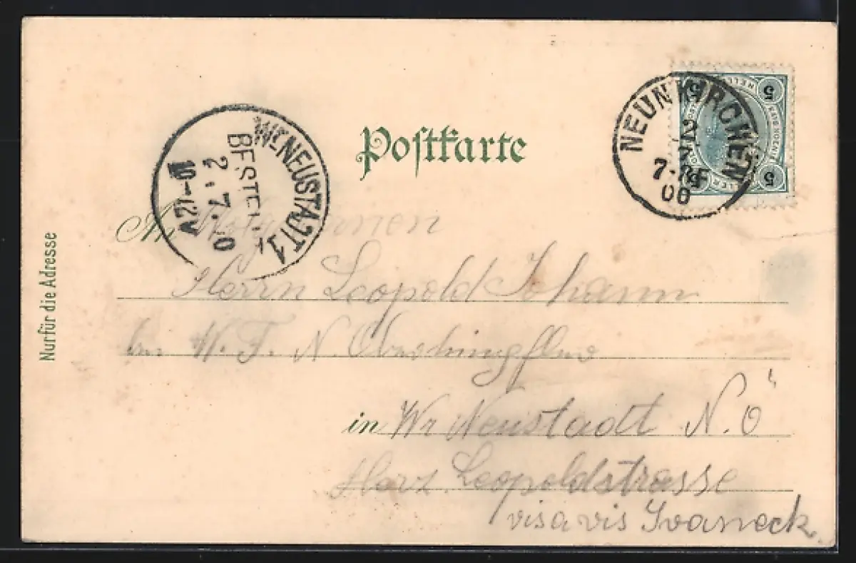 Lithographie Neunkirchen /N. Ö., Restauration z. gold. Birne, Stadtplatz, Rathaus