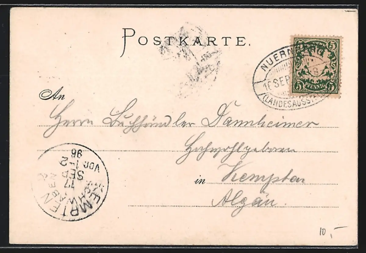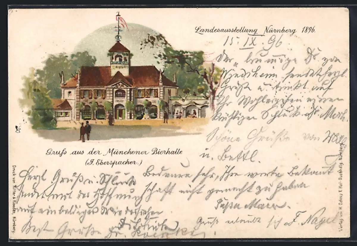 Lithographie Nürnberg, Landesausstellung 1896, Gasthaus Münchener Bierhalle