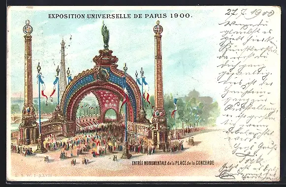 Lithographie Paris, Exposition Universelle 1900, Entree Monumentale de la Place de la Concorde, Ausstellung