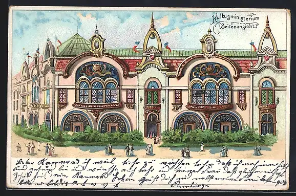 Lithographie Paris, Exposition universelle de 1900, Kultusministerium, Seitenansicht