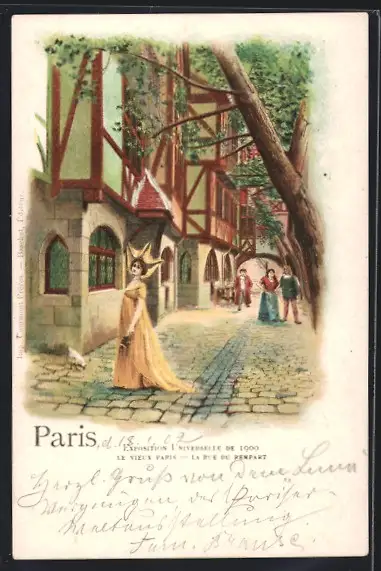 Lithographie Paris, Exposition universelle de 1900, La Rue du Rempart